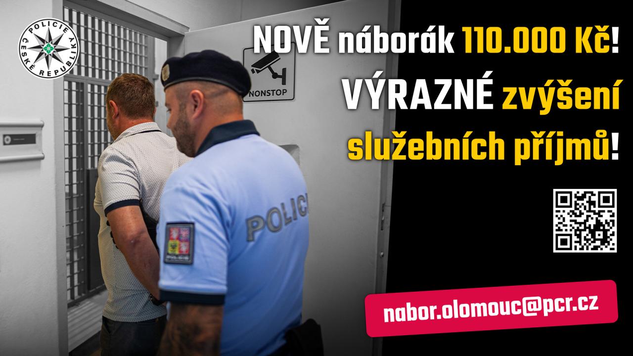 Policie České republiky hledá nové kolegy a kolegyně do svých řad. V Olomouckém kraji došlo ke zvýšení náborového příspěvku a také k výraznému navýšení služebních příjmů policistů a policistek. Bližší informace v příloze.